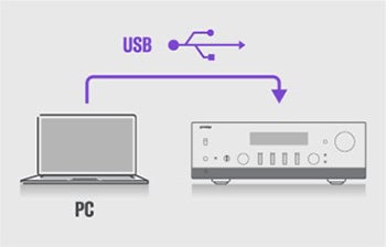 USB DAC機能には、ESS社製のD/Aコンバーター「ES9026PRO」に加え、アシンクロナス伝送による安定した伝送方式を採用しました。さらに高精度の専用水晶クロック(振動子)を搭載することで信号精度を高めています。PCM 384kHz/32bitやDSD 11.2MHzダイレクト再生にも対応しているので、AIFF*2/WAV*2/FLACなどといった各種フォーマットに対応したUSB DACトランスポート機能を持つサーバーやPCと接続して、音の静寂性と微小信号の再現性といったハイレゾ音源の魅力を最大限に引き出した高品位な音を楽しむことができます。