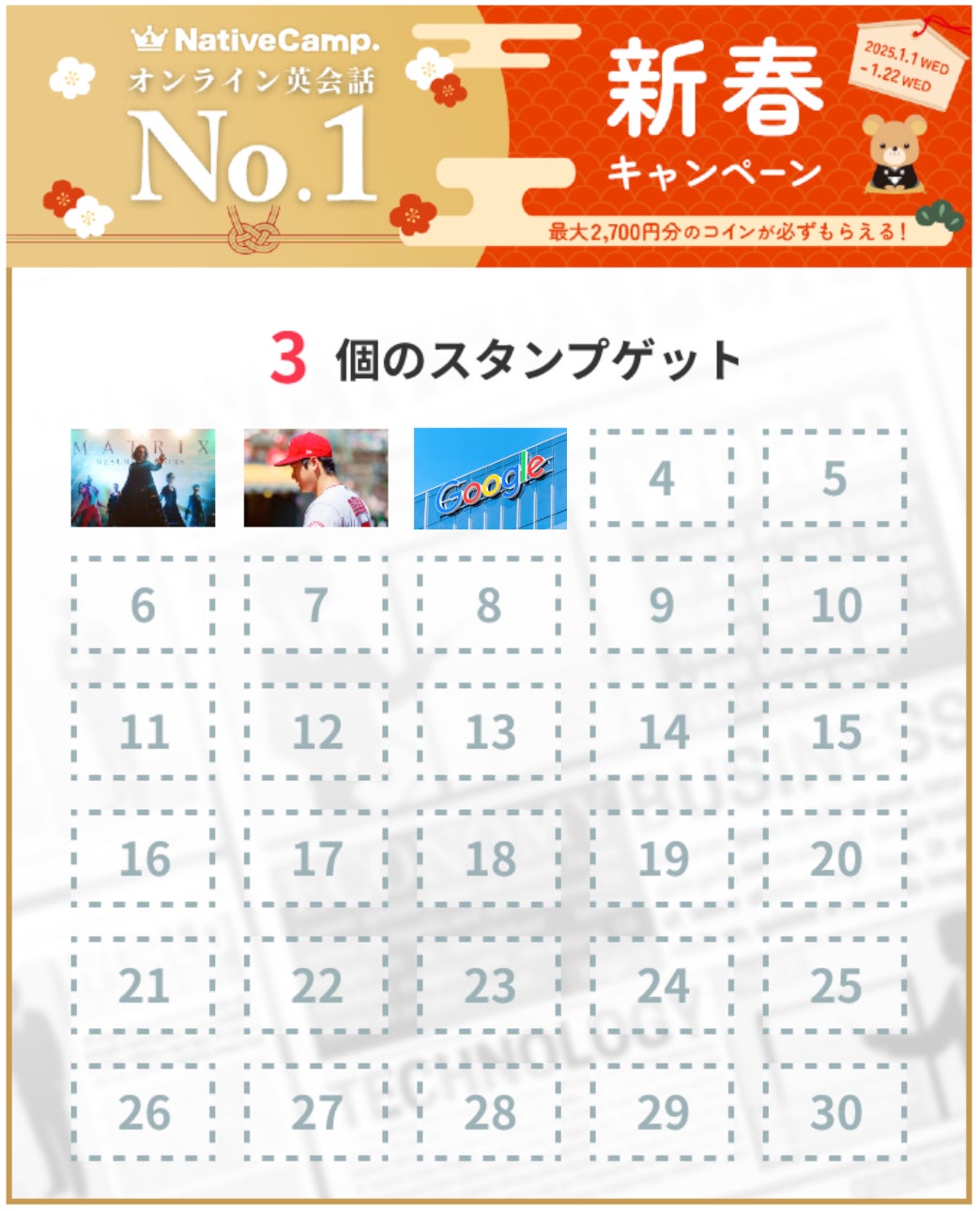 【会員数No.1】ネイティブキャンプ 新春特別3大イベント!最大2,700円分のコインが必ずもらえる「デイリーニュースキャンペーン」開催
