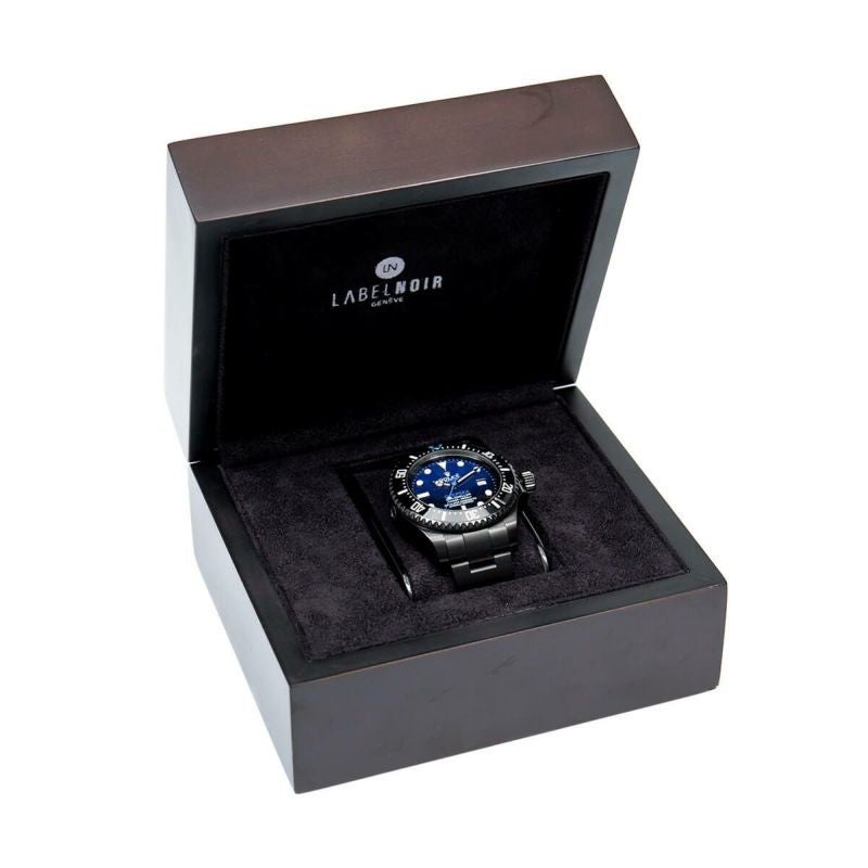 文字盤は、上半分に深みのあるブルー、下半分にブラックを配したグラデーション仕様。