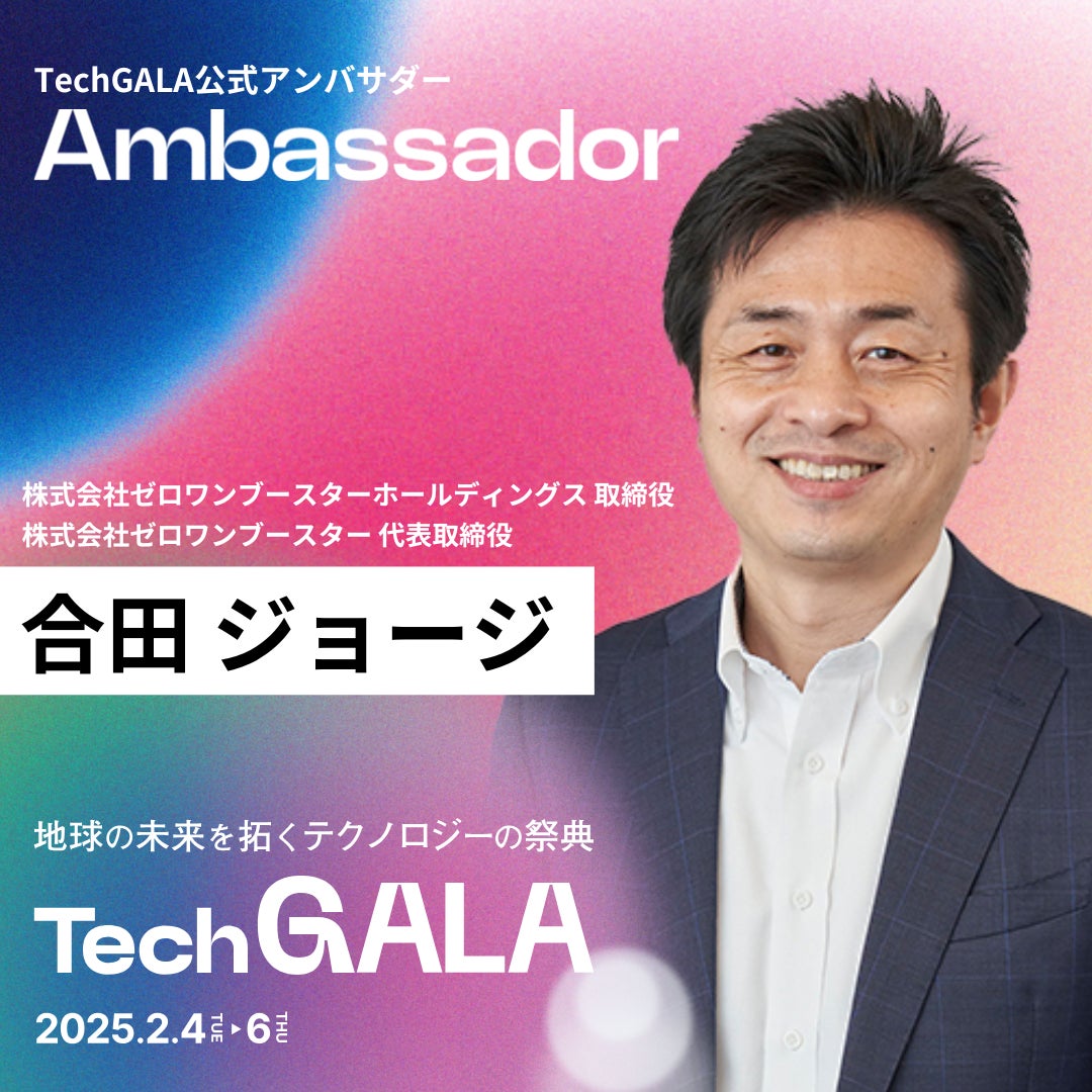 当社代表取締役の合田ジョージがTechGALAアンバサダーに就任いたしました。アンバサダーの皆さまとともにイベント全体を盛り上げ、地域のスタートアップエコシステムの活性化を目指します。