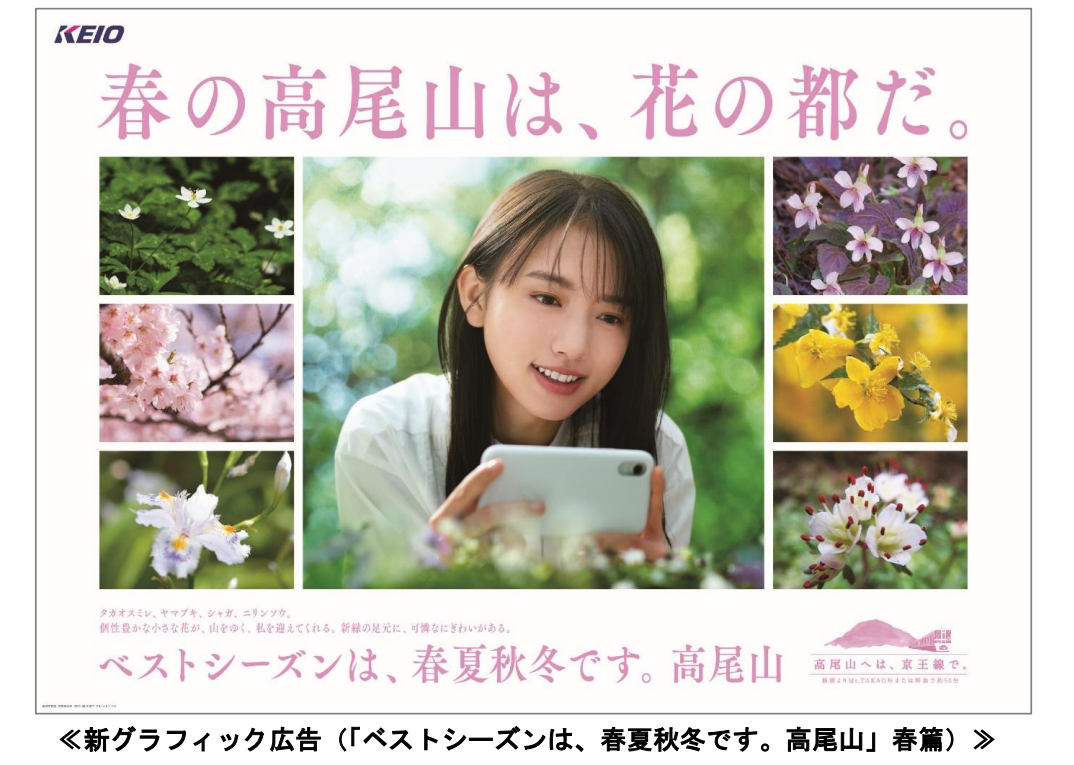 京王電鉄株式会社(本社:東京都多摩市、取締役社長:紅村 康)では、4月1日(金)から、昨年に引き続き女優の清原果耶さんを起用し、高尾山の美しい四季をPRする新たなグラフィック広告を展開します。