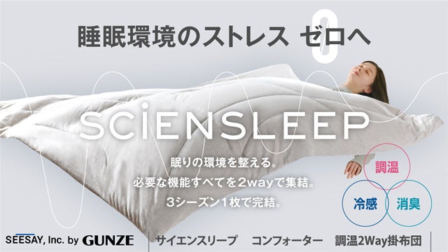 グンゼ株式会社(本社:大阪市北区、社長:佐口 敏康、以下グンゼ)の100%出資子会社である株式会社SEESAY(シセイ)(本社:東京都渋谷区、社長:奥田 洋一、以下SEESAY)は、応援購入サービス「Makuake(マクアケ)」にて、新開発の掛布団、枕、マットレスを7月8日(火)より3週連続でリリースいたします。
