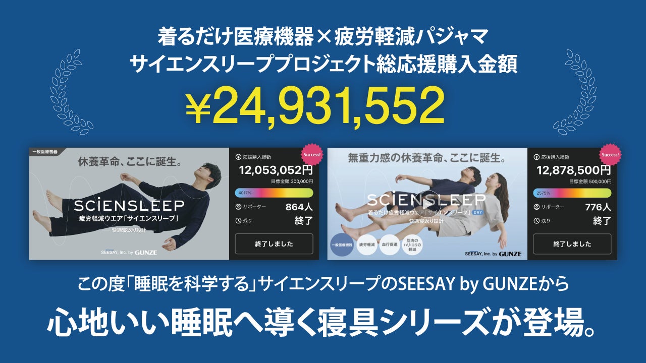 グンゼの子会社SEESAYが、寝床革命を起こす!前代未聞の3週連続Makuake プロジェクトで眠りの環境を整える寝具シリーズ販売。