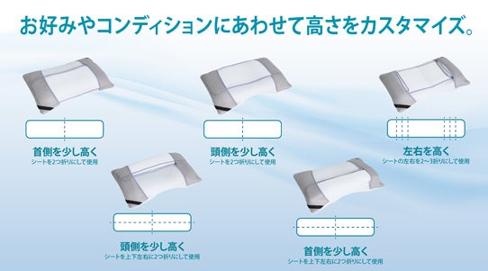 仰向けでも横向きでも、ぴったり体にフィットする高さに設定OK!自分専用にカスタマイズ可能です。