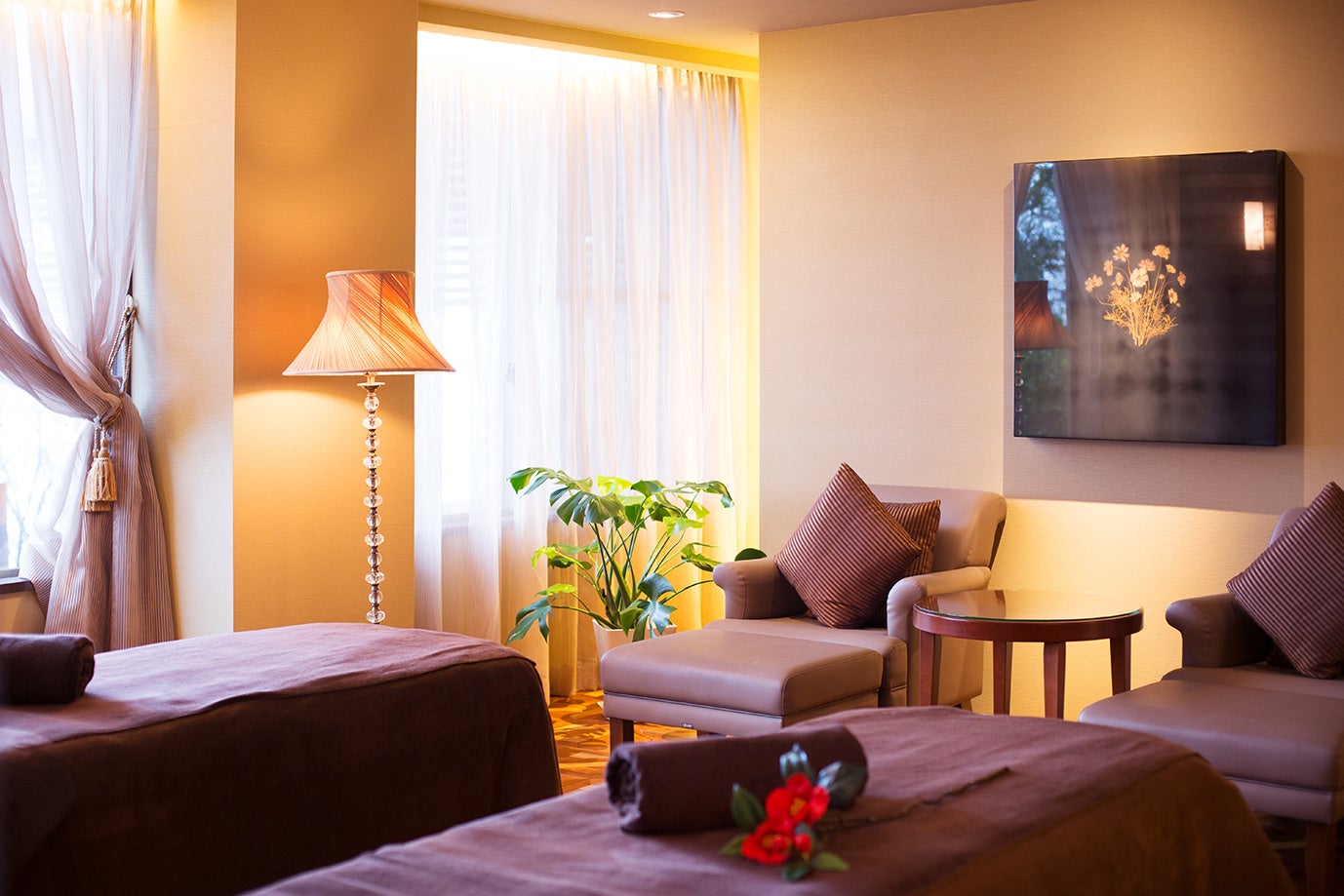 - 広さ300㎡(トリートメントルーム × 4室、アフュージョンルーム × 2室、タラソ温浴 × 2席、リラクゼーションサロン × 6席、ロッカー & パウダールーム)
