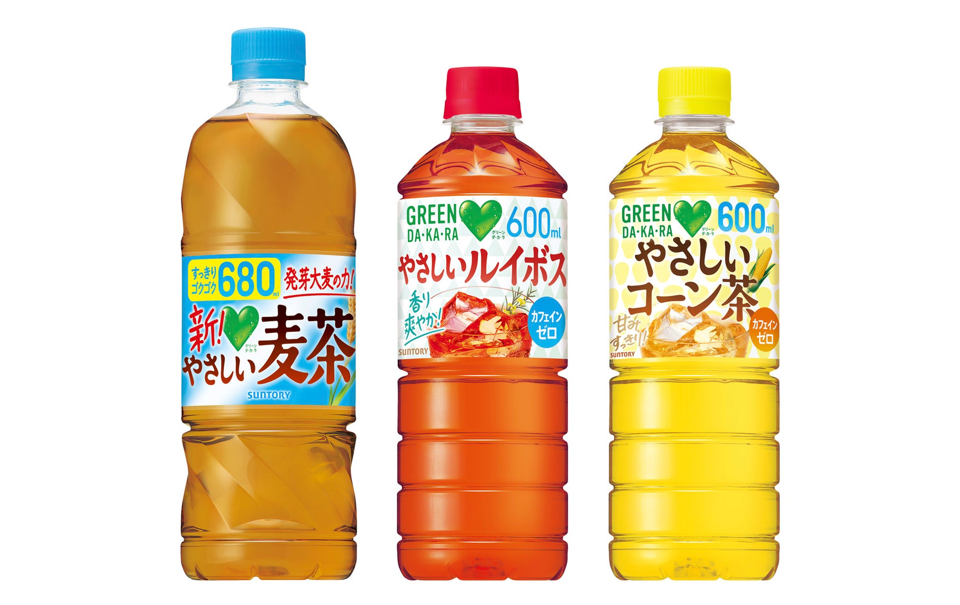 サントリー食品インターナショナル(株)は、「GREEN DA・KA・RA やさしいコーン茶」を4月8日(火)に新発売し、同時に「同 やさしい麦茶」、「同 やさしいルイボス」をリニューアル発売します。