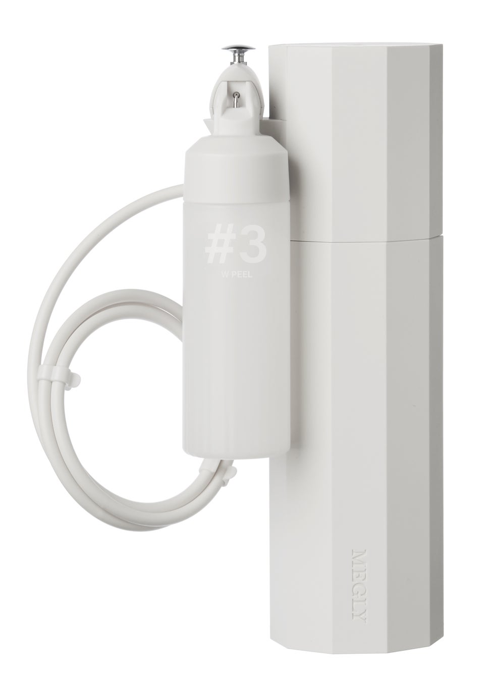 『MEGLY』は、専用化粧水・炭酸ガスカートリッジ・デバイスの3つを合わせて、洗顔後のスキンケアのはじめに使用する炭酸ミスト化粧水です。