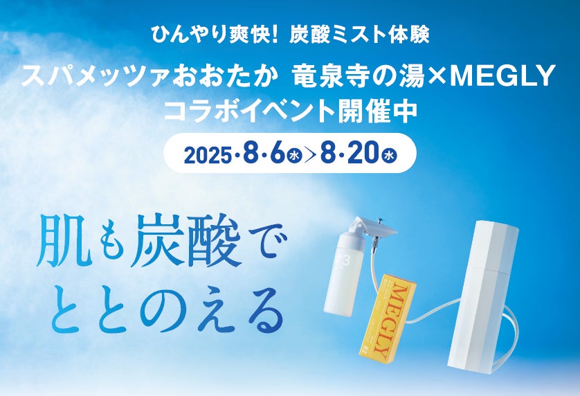 株式会社MTG(本社:愛知県名古屋市、代表取締役社⾧:松下剛)が展開する炭酸スキンケアブランド『MEGLY(メグリー)』は、オークランド観光開発株式会社(所在地:愛知県春日井市、代表取締役:松永明子)が運営する関東最大級の温浴施設『スパメッツァおおたか 竜泉寺の湯』とのコラボレーションで、入浴前後の肌状態を独自に調査。
