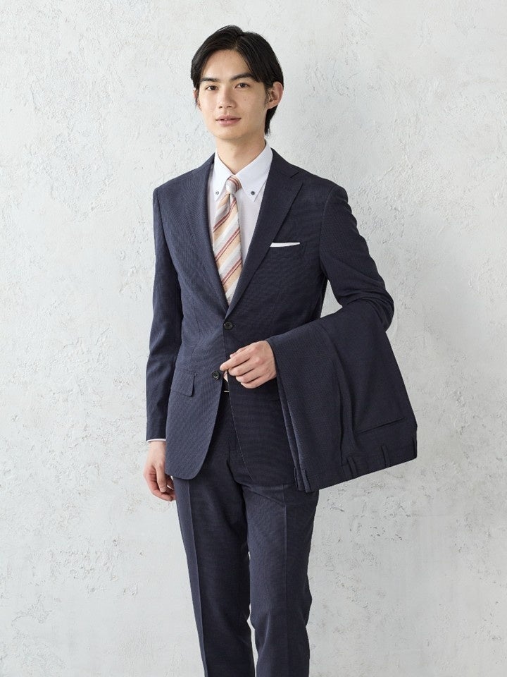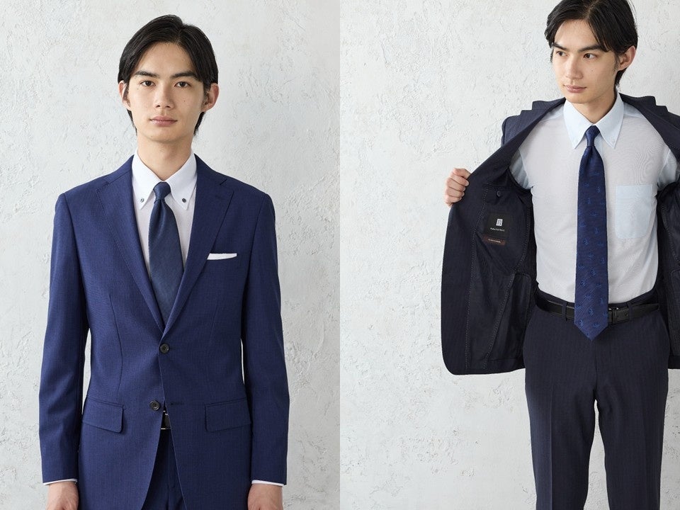 カラーは知的で爽やかなブルーとネイビーの2色を展開。ビジネスにおける信頼感を保ちながら、最新のテクノロジーで「着ている方が涼しい」と感じられるほどの快適さを追求しました。ハードに働くビジネスパーソンを、機能と品質の両面から強力にバックアップする、まさに春夏の決定版といえるビジネスウエアです。
