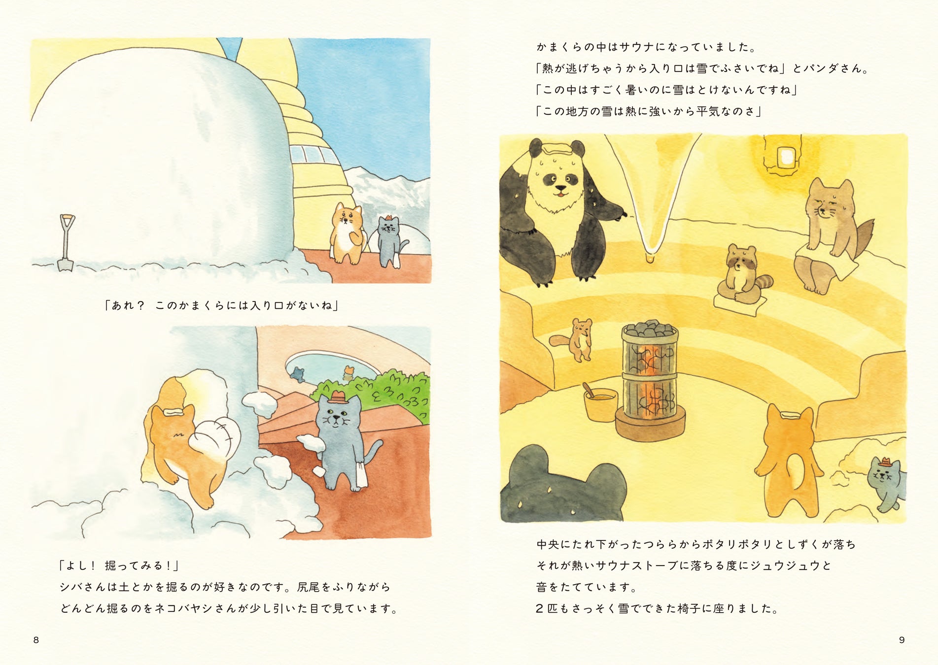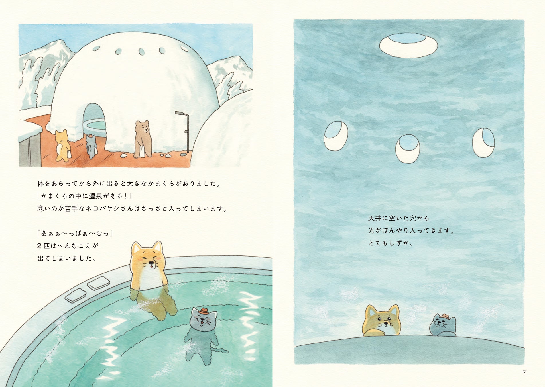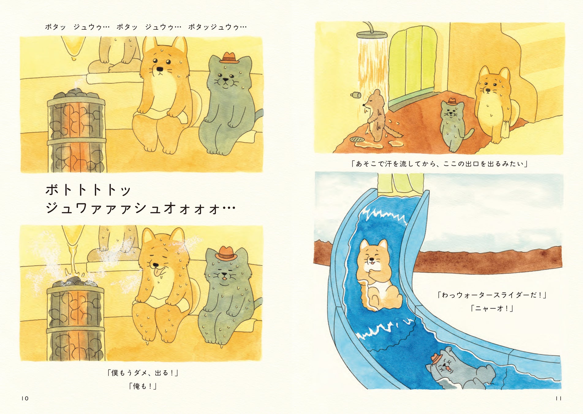 人気絵本作家・キューライスの最新作、温泉に癒されるシバ犬と猫の旅絵本『旅するシバとネコバヤシ』発売(1/18)。
