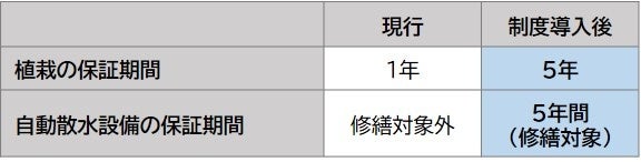 保証期間5年の植栽枯れ木保証制度を導入開始