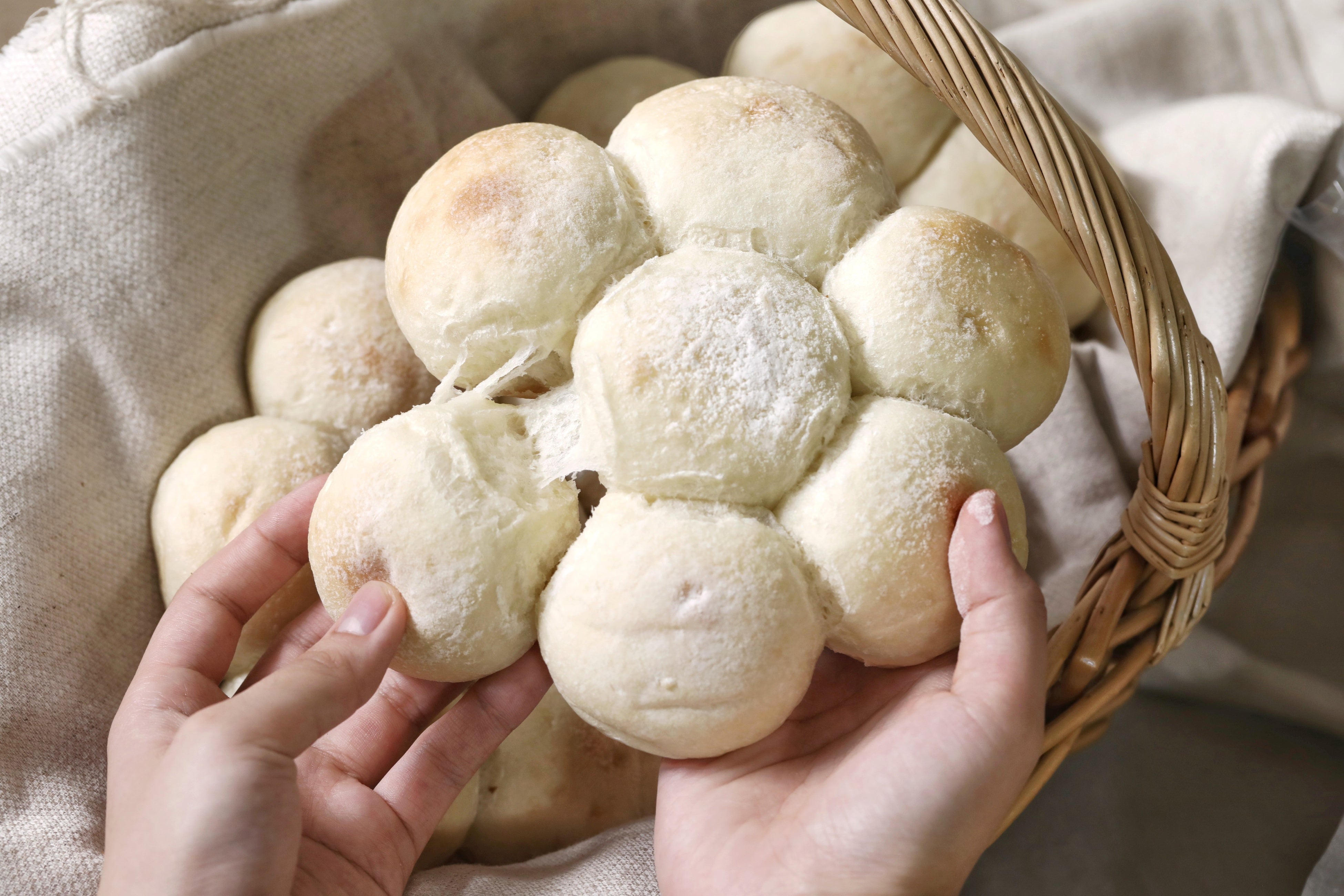 グランディールから誕生した高級食パン『京』の生地を使用したちぎりパン。もっちりと引きのある日本人好みの食感で、口どけよく飽きのこないシンプルな味わいに仕上げました。朝食やおやつにはもちろん、具をはさんでサンドイッチにするのもおすすめです。ぜひご家族と分け合って食べていただきたい一品です。
