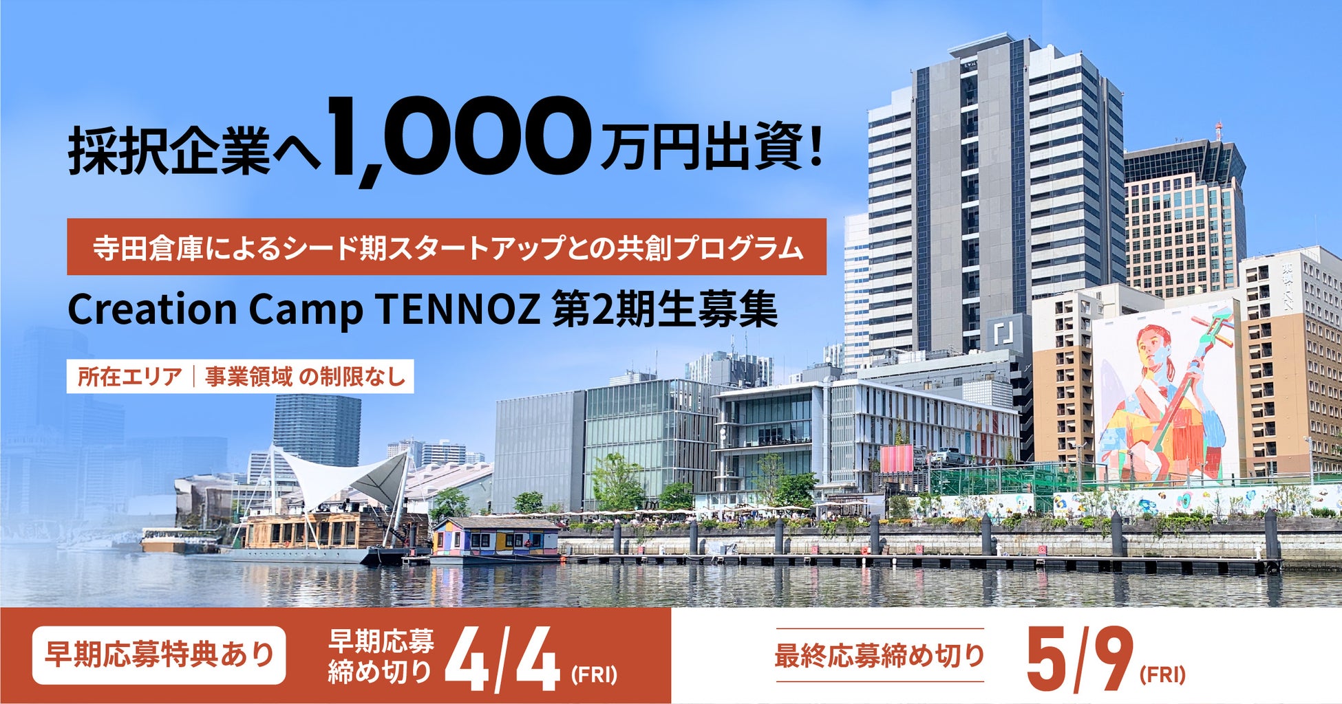 日本最大級のオープンイノベーションプラットフォーム「AUBA(アウバ)」を運営する株式会社eiicon(エイコン 本社所在地:東京都文京区後楽、代表取締役社長:中村 亜由子、以下 eiicon)は、2025年3月3日(月)より、寺田倉庫株式会社(本社所在地:東京都品川区東品川、代表取締役社長:寺田 航平、以下 寺田倉庫)が実施するシード期スタートアップの成長を支援するインキュベーション事業『 Creation Camp TENNOZ (以下 本プログラム)』第2期スタートアップの応募受付を「AUBA」にて開始したことをお知らせします。