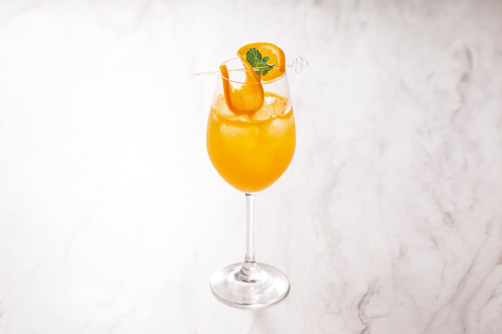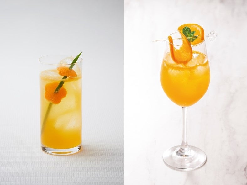 金柑リキュール、オレンジジュース、シャンパンを合わせた、お食事との相性も良いカクテル。女性の「∞(無限)の可能性」をイメージしたスライスオレンジを飾りました。名前は、「不滅」や「枯れない」という花言葉を持つ、アマランスが由来となっています。