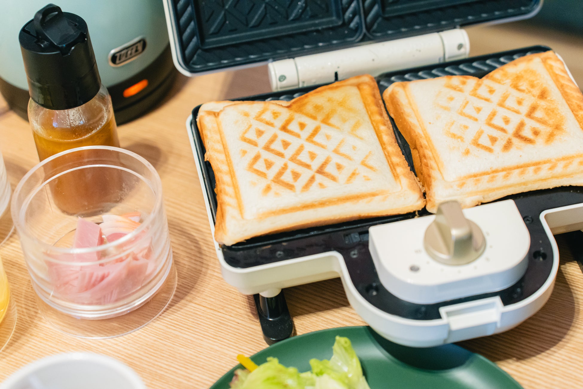 ご朝食は焼きたてのオリジナルホットサンドをごゆっくりお召し上がりいただけます。