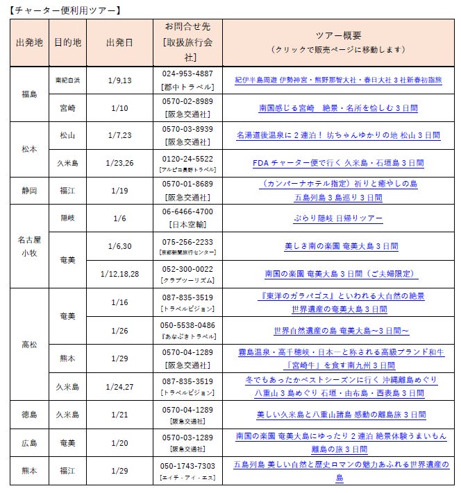 現在募集中の、FDAチャーター便を利用した旅行ツアーのご案内です。