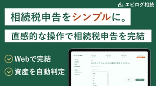 Inheritechが提供する「エピログ相続」は、はじめて相続する方でも、自分自身で相続税申告書を作成できるWebサービスです。相続専門の税理士が監修したガイドに沿って、一問一答形式で質問に答えていくことで、相続人の判定や財産評価、相続税額の算定、申告書類の出力ができます。土地評価についてもシステム上で完結できる点が特長です。エピログ相続では、相続税申告に必要となる主要な書類をWebブラウザ上で作成・出力することができ、申告に関する一連の流れを利用者自身のペースで進められる環境を提供しています。