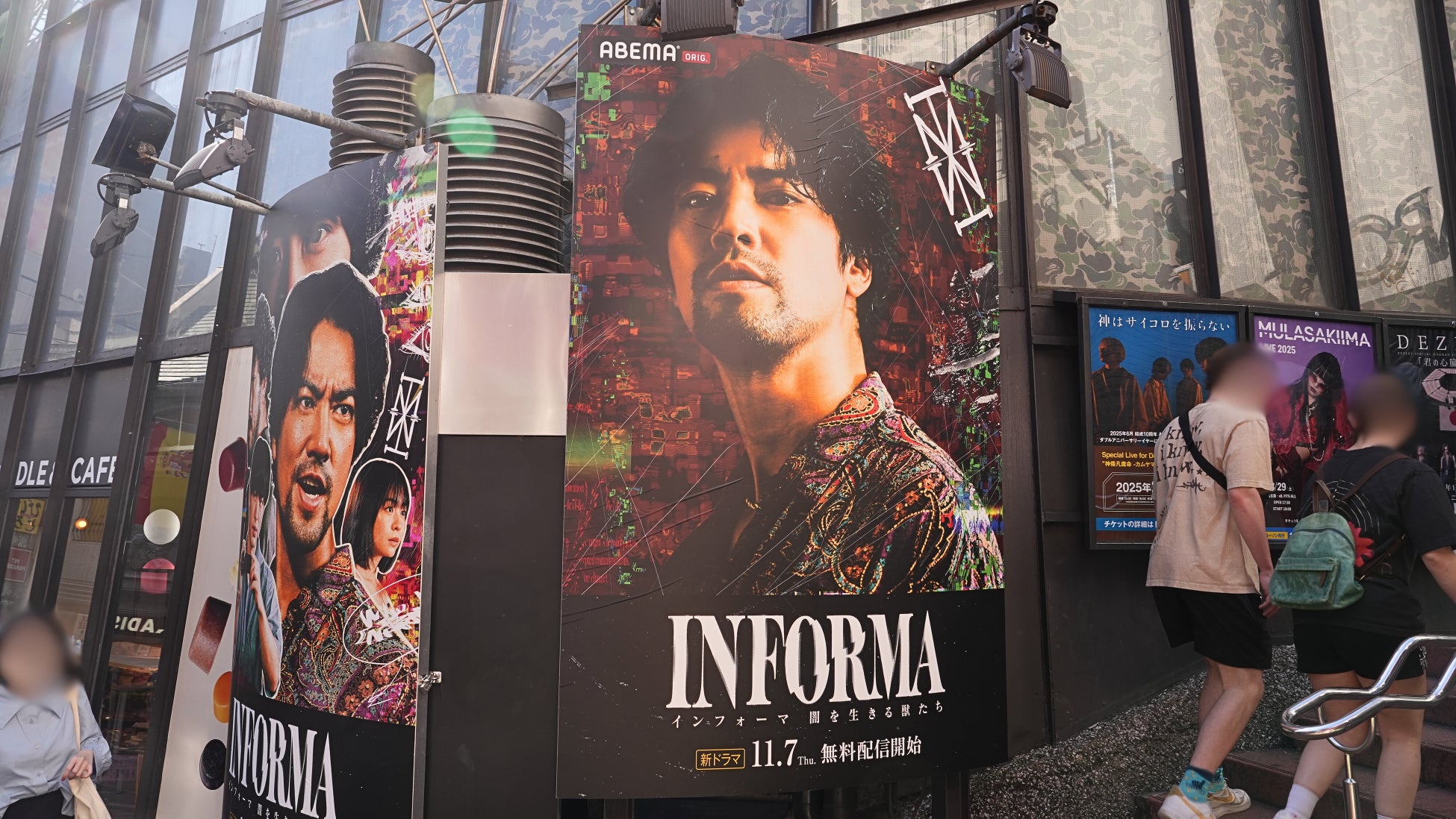 ABEMAオリジナルドラマ『インフォーマ -闇を生きる獣たち-』桐谷健太が演じる“インフォーマ”・木原の巨大な目のビジュアルが「見てるで」と通行人に鋭い視線!東京や大阪にて強烈な印象を残すOOHを掲出