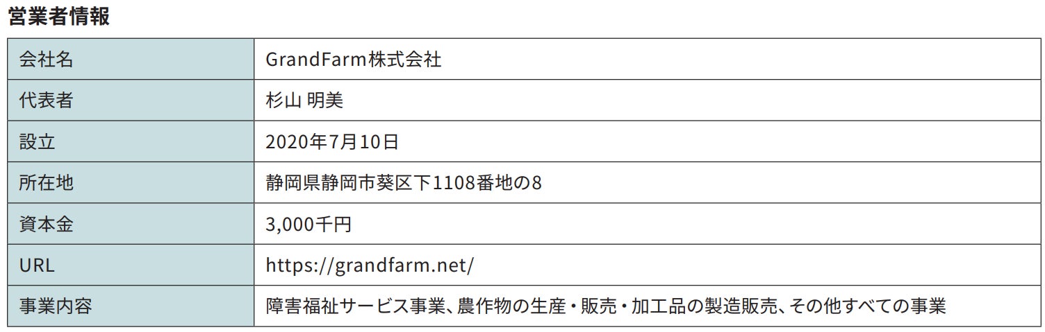 GrandFarm株式会社は、静岡市に本社を構え、県内5ヶ所と広島県に支部を有し、スマート農業や太陽光型植物工場での野菜の栽培など先進的な取り組みで注目される農業生産法人「株式会社 鈴生(すずなり)」のグループ会社として2020年7月に設立されました。