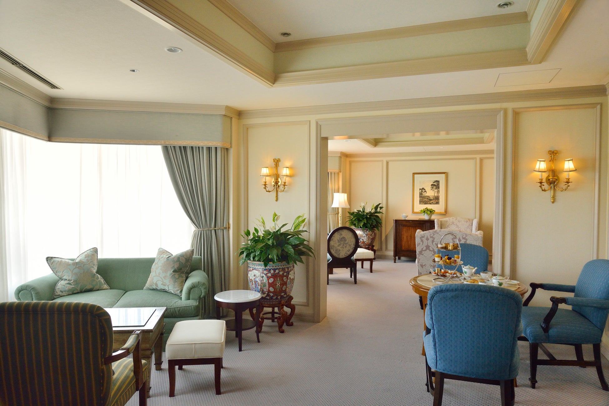ホテルの高層階(12階)に位置し、広大な庭園を眺望できるアフタヌーンティーラウンジ「パゴダルーム」。室内はゆったりとお寛ぎいただけるソファやチェアを配置し、ご宿泊者限定のプライベートな空間でPremium アフタヌーンティーをお楽しみいただけます。