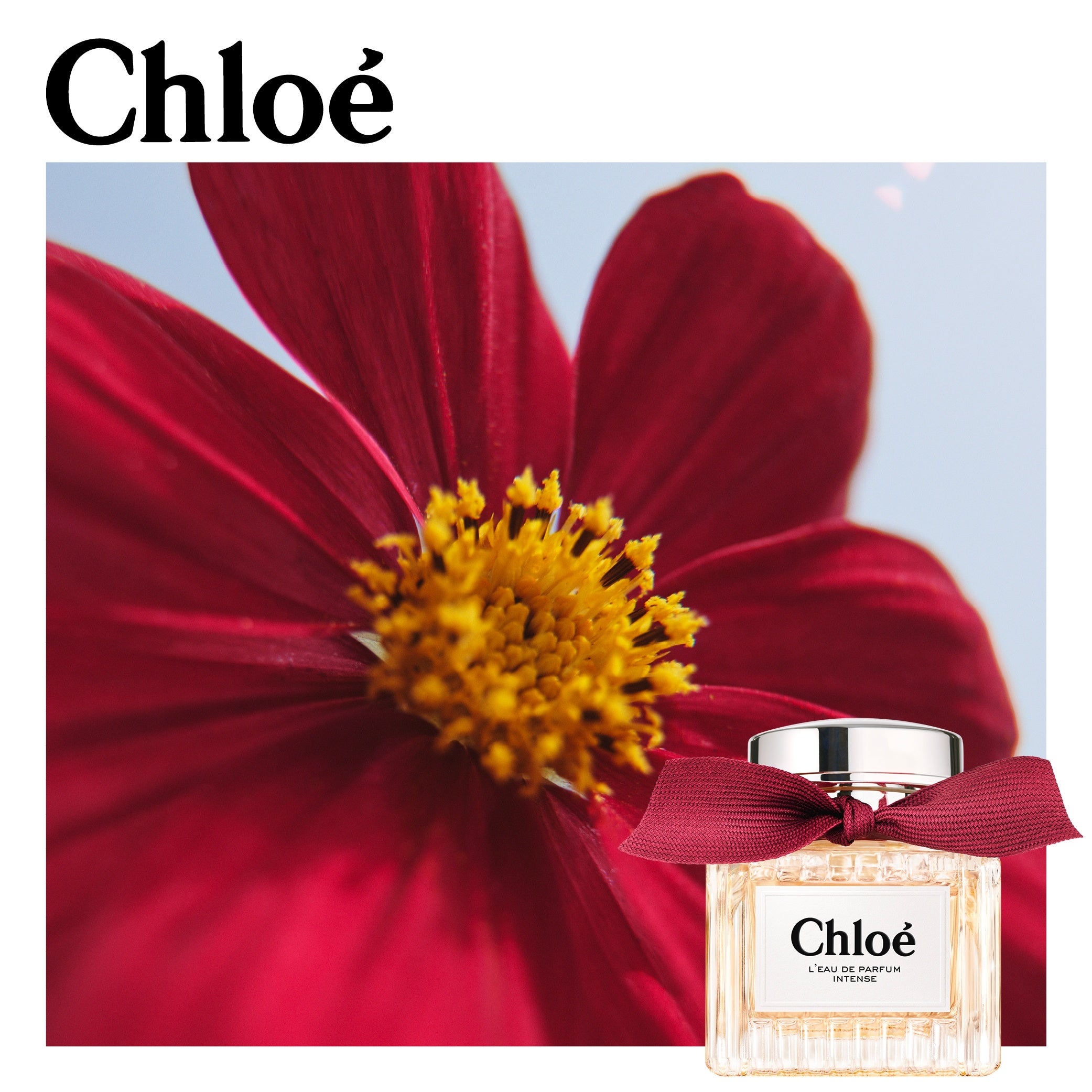 クロエ オードパルファム インテンスでは、クロエらしいサンレイプリーツをモチーフにしたフレグランスボトルをリニューアル。ブラックと淡いベージュのラベルをあしらい、さらにモダンで洗練されたスタイルになりました。ボトルネックに結んだリボンの色も深みのあるガーネットカラーに変わり、キャンペーンビジュアルに登場する咲き誇る花々を彷彿とさせます。