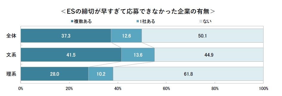 「ESの締切が早過ぎて応募できなかった企業がある」学生は約半数(49.9%)