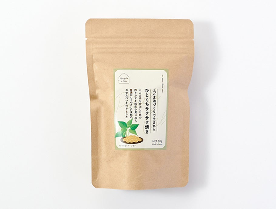 えごま油を搾油した際に残った搾りかすを国産小麦に加え、昔懐かしくやさしい食感のおせんべいにしました。お子さまのおやつにもおすすめです。