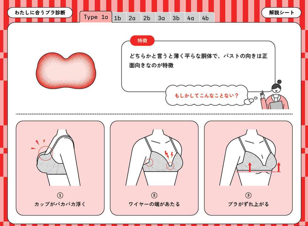 3D計測サービスのほか、計測結果から10分でからだに合ったブラジャーのタイプがわかる[わたしに合うブラ診断]や、有料サービスとしてセルフでAIによる骨格診断が受けられる[わたしを知る骨格診断]、姿勢レベルやバランスタイプを診断する[からだバランス診断]を提供しています。
