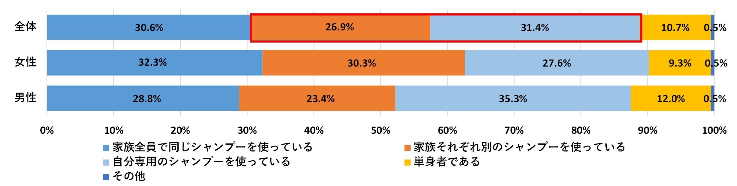 <シャンプーに関する全国意識調査>家族内のシャンプー使い分け事情を調査! 「自分専用」・「家族別々」が合計で約6割という結果に