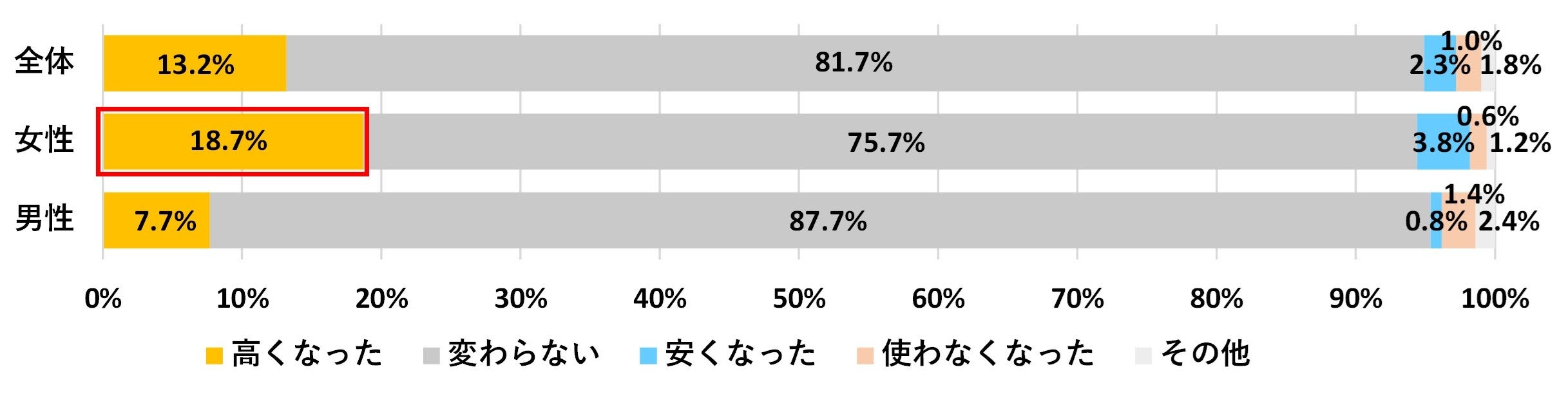 ◆女性の約2割は購入するシャンプーが5年前より「高くなった」と回答