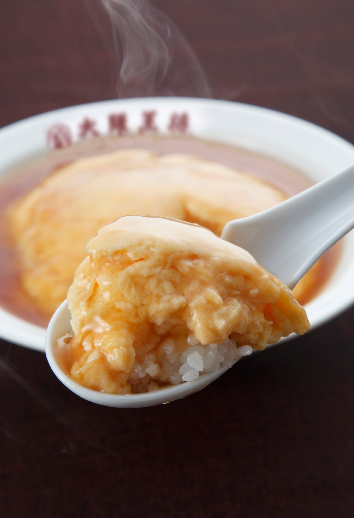 オムレツのようなふっくらとした2.5cmもの厚みがある玉子が特徴の天津飯です。玉子には弊社独自の「ふわとろの素」を混ぜ込むことで「ふわっふわ、とろっとろ」の柔らかな食感を楽しんでいただけます。餡は醤油ベースの関西風。余計なものは入れず玉子で勝負したこだわりの一皿です。