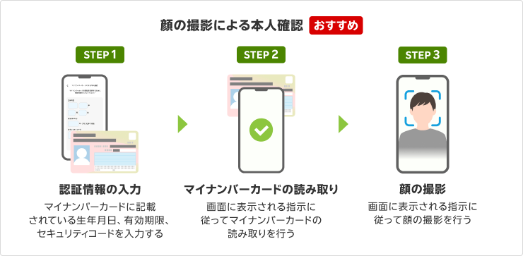お客様の顔写真とマイナンバーカードに記録された情報を組み合わせた認証方法