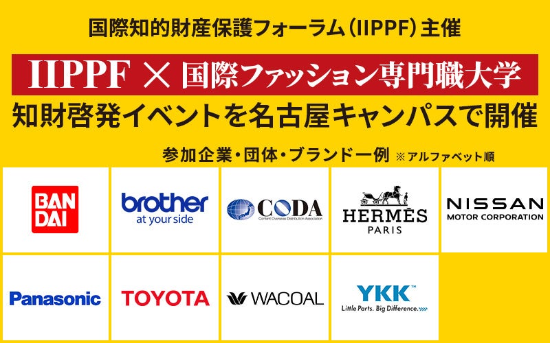 国際知的財産保護フォーラム(以下、IIPPF)主催による知財啓発イベント「世界のニセモノ対策 最前線!~知財で目指す、より良い社会~」が、国際ファッション専門職大学(名古屋キャンパス)にて、2024年11月11日(月)に開催されます。模倣品や海賊版はさまざまな産業にとって深刻な脅威であり、知的財産は、クリエイティブなアイディアやデザインなど、ブランド価値を保護するために不可欠な要素です。このイベントは、「ファッション」「ビジネス」を学ぶ国際ファッション専門職大学の学生たちに知財の大切さを伝え、将来のファッション、ビジネスを担う人材を育成する場として重要な役割を果たします。