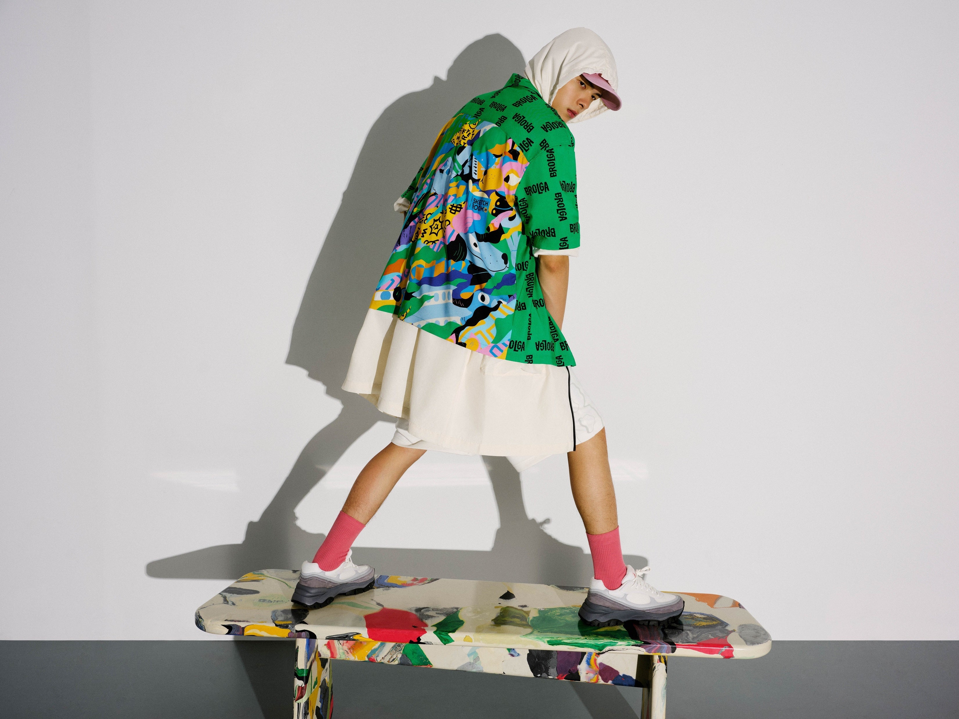 ボクシーTシャツやリゾートシャツなどの定番アイテムは、ルーズフィットでオーバーサイズのアイテムが揃います。カラーパレットは、BROLGAのイラストにインスパイアされたもので、強いアクセントカラーが中心となります。大胆で遊び心のあるプリントの、プレイフルなコレクションです。