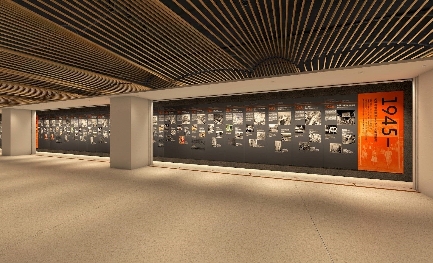 西日本鉄道㈱は、天神ビッグバンエリア内に本年4月24日開業予定のONE FUKUOKA BLDG.(略称:ワンビル)地下2階東側外壁面に 『因幡町通り地下通路 天神歴史年表』 を新設し、2月22日(土)より公開いたします。