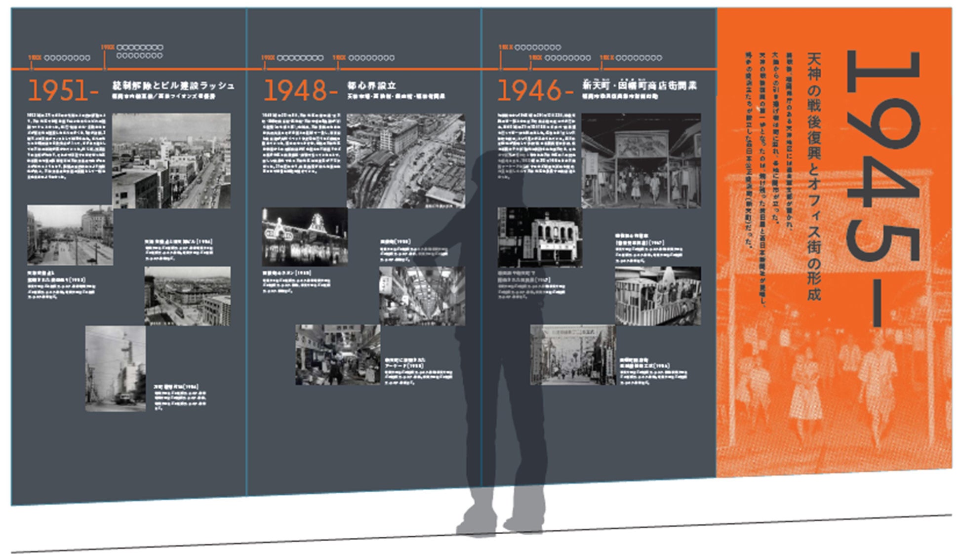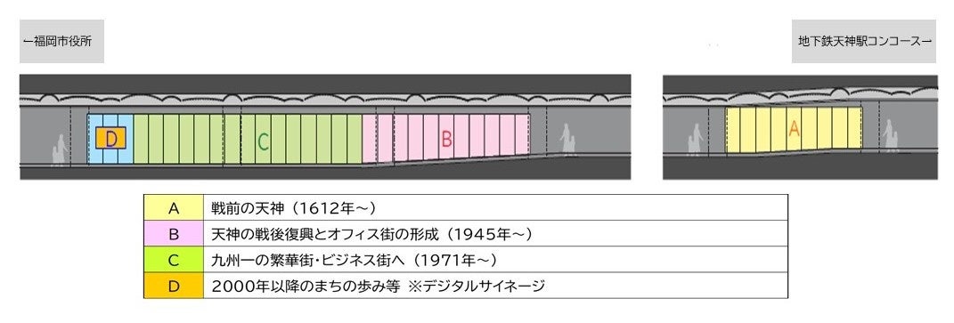 「天神歴史年表」の設置を通じて、観光・ショッピング・ビジネス等で天神を訪れる多くの皆さまが気軽にまちの歴史や思い出に触れていただける場を創出するとともに、天神エリアのポテンシャルを再認識していただき、今後のまちの進化への機運醸成につながることを期待しています。