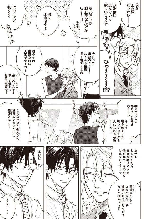 鯛代(たしろ)と瀬賀(せが)のモデル撮影見学に来た蛯原(えびはら)&漫研メンバー。一同、爆イケな二人の姿に大興奮!