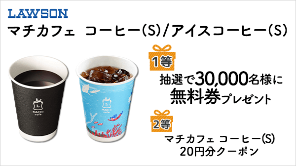 - 『マチカフェ コーヒー(S)・アイスコーヒー(S)税込100円商品』を30,000名様にプレゼント