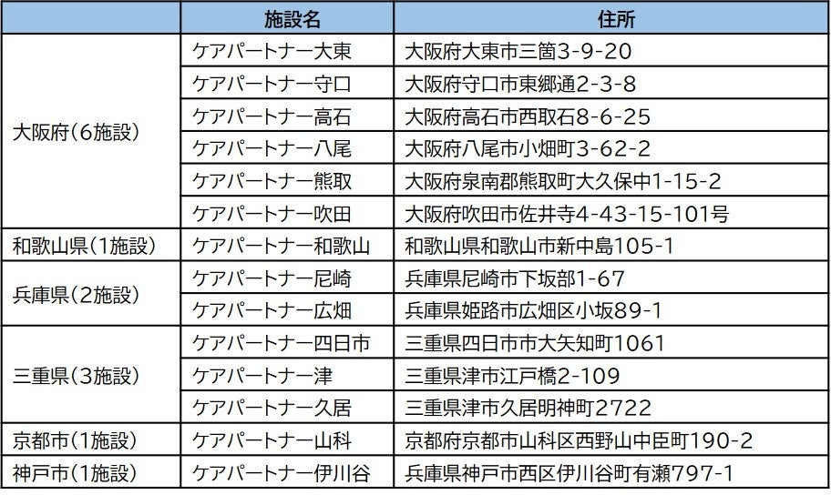 同社は2020年3月に、介護事業所として初めて九都県市※2と同協定を締結しており、すでに26施設が災害時帰宅支援ステーションに登録されていますが、今回の関西広域連合との協定締結により、新たに14施設が登録されます。これにより、同社の運営する82施設※3のデイサービス施設のうち、40施設が災害時帰宅支援ステーションに登録されます。なお、関西広域連合としては、初めての介護事業所の登録となります。