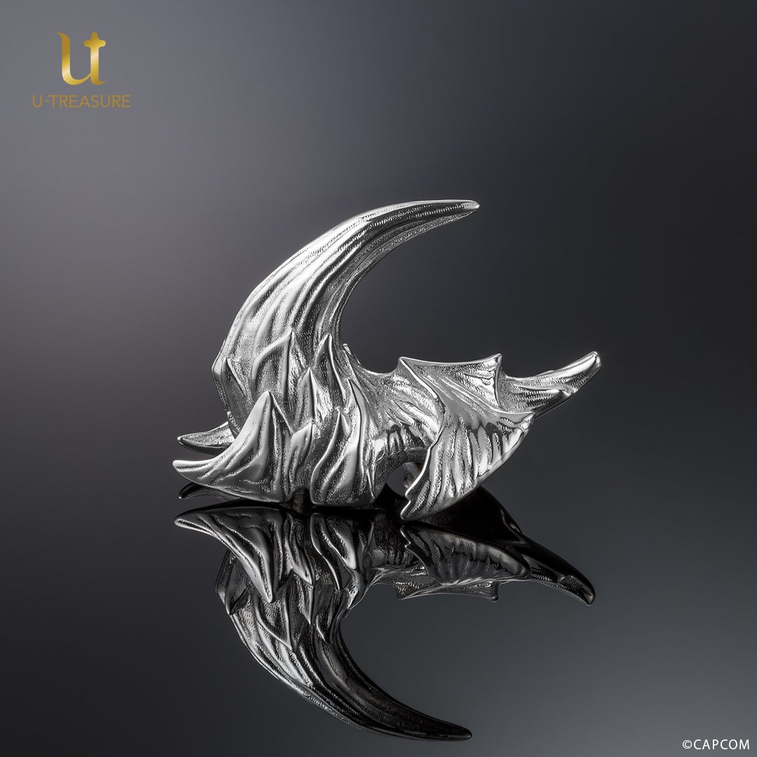 このたびの新作は、「モンスターハンター」に登場する、希少な素材「火竜の逆鱗」を公式監修のもと再現したオブジェです。造形や表面の風合いも大切にしながらジュエリー職人によって一つひとつ手作業で丁寧に仕上げております。