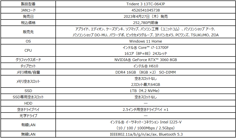 https://jp.msi.com/Desktop/Trident-3-13TC-064JP