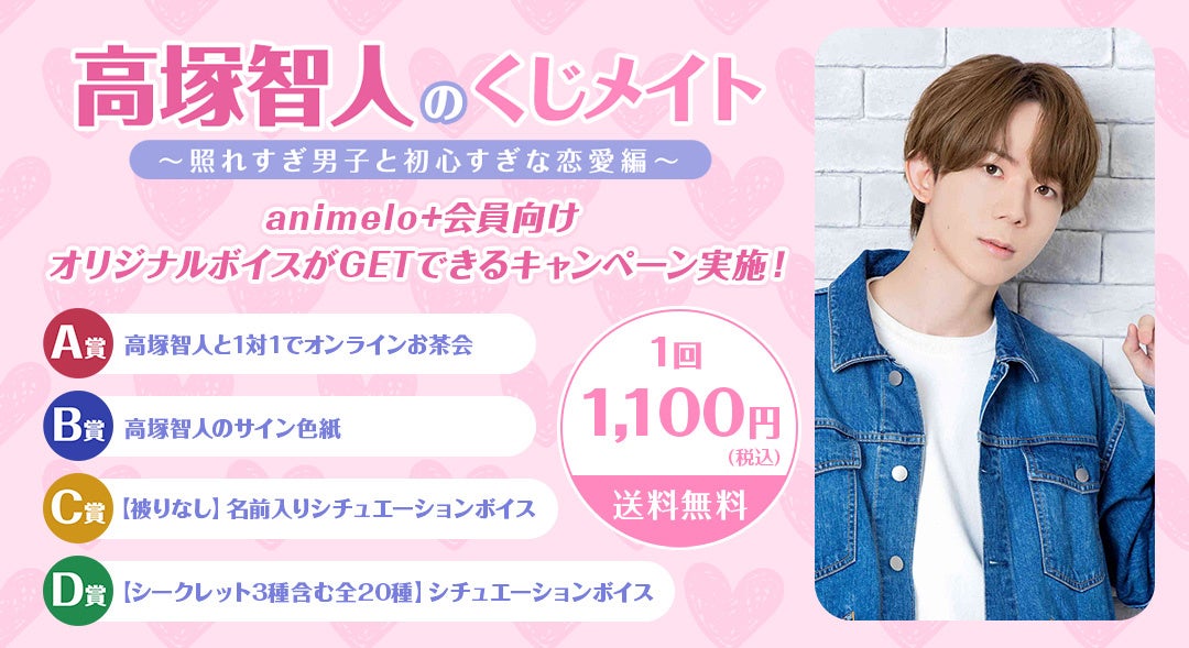 6月21日(水)より販売開始の「高塚智人のくじメイト~照れすぎ男子と初心すぎな恋愛編~」は、アニメイト通販内で購入できるはずれなしのオンラインくじサービスです。