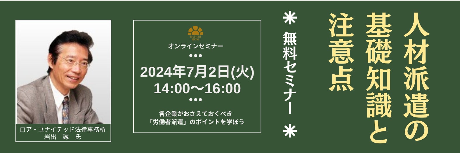 人材派遣にまつわる法令・制度について、本セミナーでは一気に確認していきます。