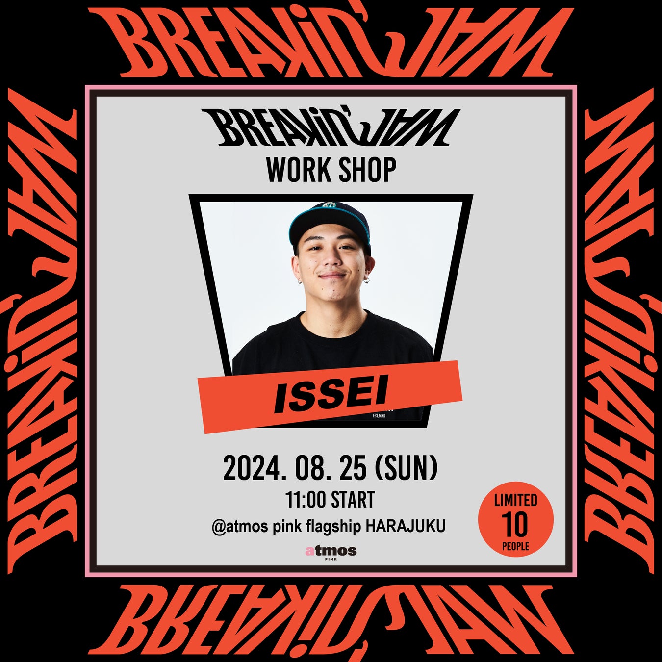 また、日本のブレイキン界の新たなスターを発掘し育成することを目的とし開催される「BREAKIN’ JAM」に合わせ、atmos pink心斎橋店と原宿店内にあるダンススタジオにて講師を迎えた初のブレイキンワークショップを開催します。