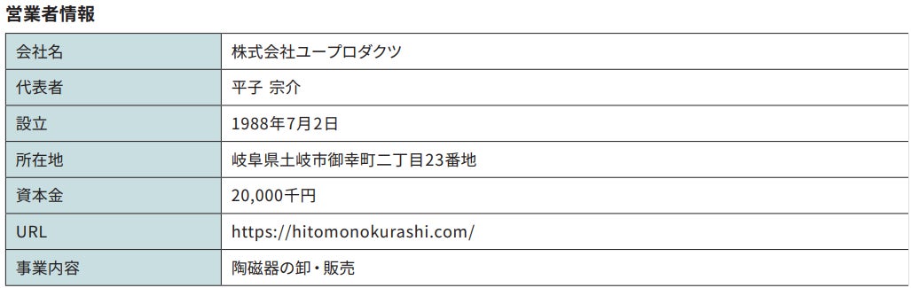 株式会社ユープロダクツは、日本三大陶磁器のひとつである美濃焼の流通に携わる産地商社です。従来の問屋からの脱却を図り、産地商社としてつくり手の想いや熱量、そしてものづくりの素晴らしさを発信する独自の取り組みを行っています。