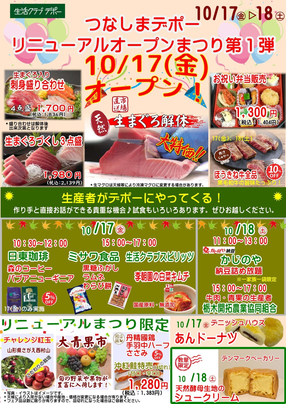 国産中心・添加物削減・減農薬にこだわった生活クラブ生協のお店「つなしまデポー」が10/17(金)リニューアルオープン!