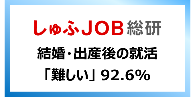 結婚・出産後の就職活動について、女性はどう感じているのか?「難しい」 92.6%|就活が難しい理由「両立できる仕事少ない」78.1%