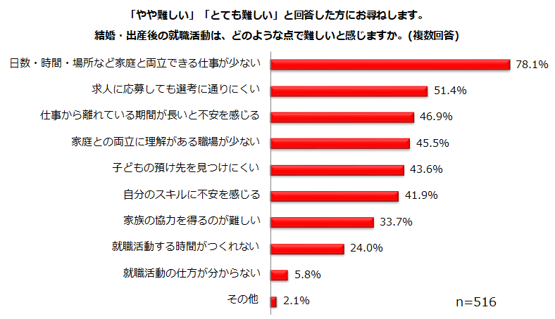 2.結婚・出産後の就職活動が難しい理由「家庭と両立できる仕事が少ない」78.1%