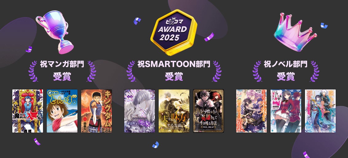 ・ユーザーの貴重な読書データに基づいて選ばれた「ピッコマAWARD 2025」のマンガ、SMARTOON®︎、ノベル各部門の受賞作品を発表。
