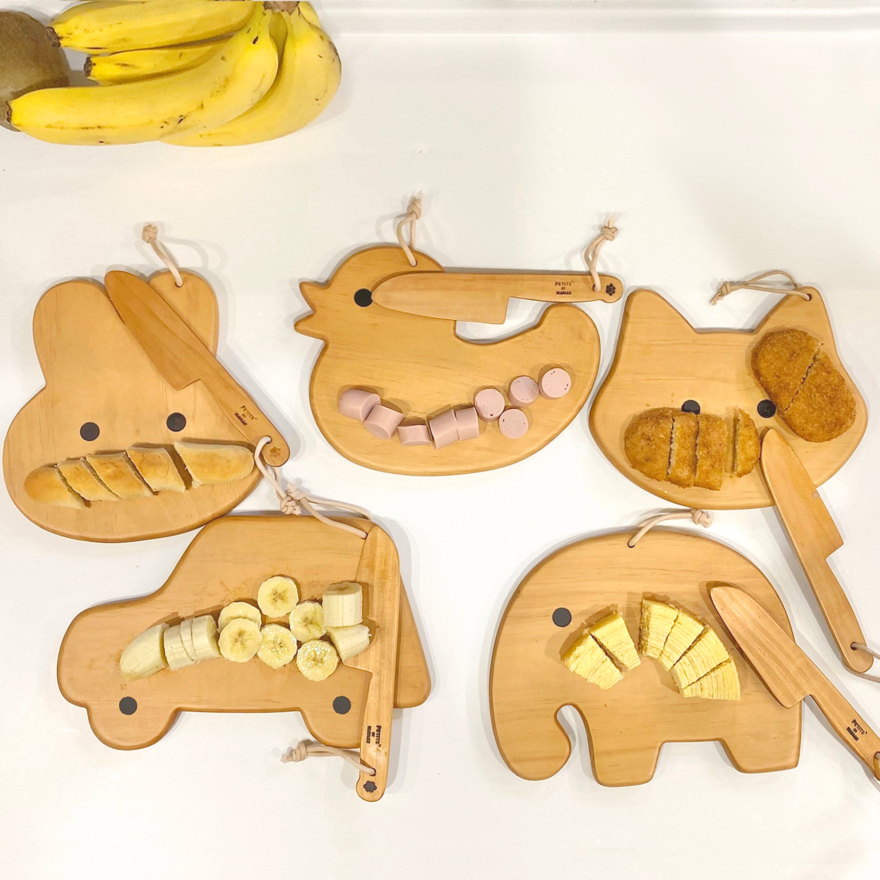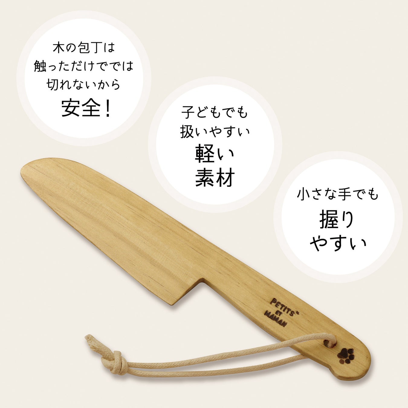 子どもたちの「お手伝いしたい!」という気持ちに応えたいけれども、刃物のお手伝いには見ているママもちょっぴりヒヤヒヤしてしまいますよね。そこで、プチママンの可愛らしいまな板と子供の手にぴったりな木製包丁が登場しました。安全性を重視した設計の木製キッチンツールなら、ママも子供も楽しみながら、安心して一緒にお料理ができます。